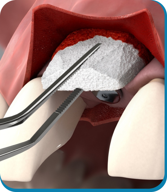 نستخدم طعومًا صناعية متوافقة حيويًا، أو عظامًا من متبرع، أو عظام المريض نفسه، وذلك حسب الحالة.