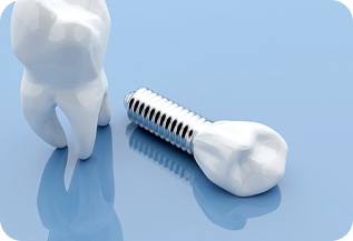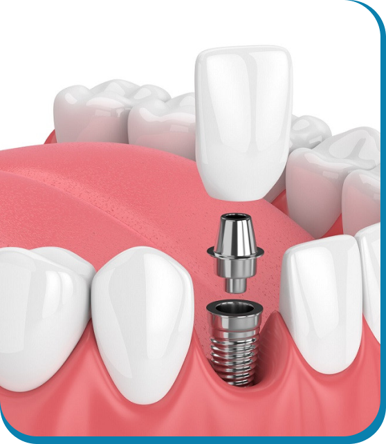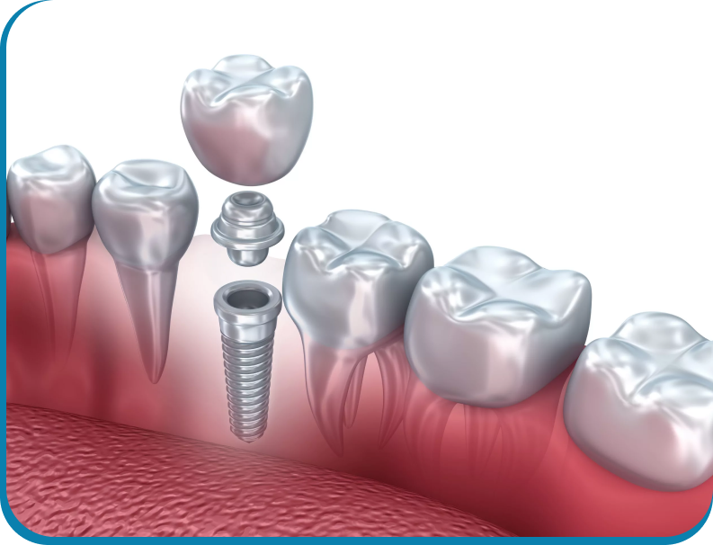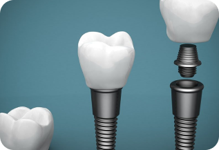 يتم إدخال دعامة من التيتانيوم أو السيراميك جراحياً في عظم الفك تحت التخدير الموضعي.