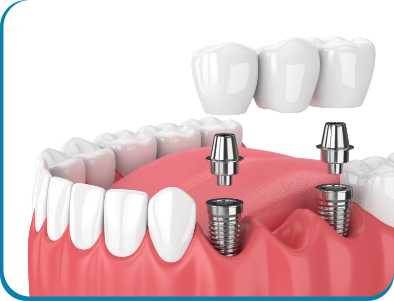 عند فقدان عدة أسنان، يمكن استخدام زراعة الأسنان لدعم جسر أو طقم أسنان. وهذا يغني عن وضع غرسة لكل سن، مما يوفر قوة وثباتًا بعدد أقل من الدعامات.