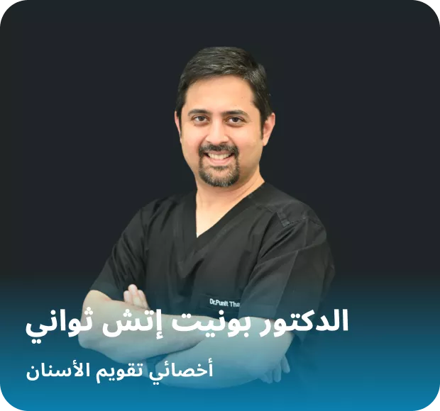 الدكتور بونيت إتش. ثواني أخصائي تقويم أسنان يتمتع بخبرة متقدمة في مجال تقويم الأسنان الشامل. وهو عضو في الكلية الملكية للجراحين في إدنبرة (المملكة المتحدة)، ويتخصص في أجهزة التقويم الثابتة والذاتية الربط، وأجهزة التقويم الشفافة بما في ذلك إنفيزلاين®، والتقويم اللساني، وزراعة الأسنان الدقيقة. كما يُدير الدكتور بونيت حالات جراحة تقويم الفكين وحالات تقويم الأسنان المتعلقة بمفصل الفك الصدغي وفقًا لمنهجية FACE في تقويم الأسنان. يتقن الدكتور بونيت اللغتين الإنجليزية والهندية، ويُعرف بنهجه الدقيق وتفانيه في خلق ابتسامات متناسقة وواثقة، مع راحة وثبات طويل الأمد.