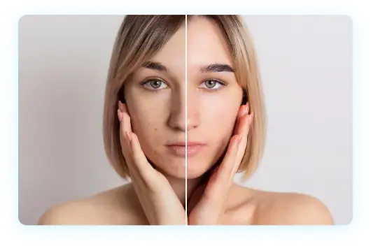 نقدم العلاج بالليزر، والتقشير الكيميائي، والميزوثيرابي، والكريمات الطبية الموضعية. يتم تخصيص كل علاج حسب شدة الحالة ونوع البشرة، مما يضمن نتائج آمنة وفعالة مع فترة نقاهة قصيرة.