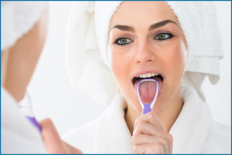 While using a toothbrush, start working from the extreme back of your tongue and brush towards the front. Then rub the bristles from one side to the other. This will make sure that the entire tongue surface is covered.
