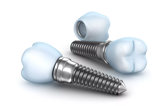 A custom-made crown, bridge, or denture is attached, completing the restoration.